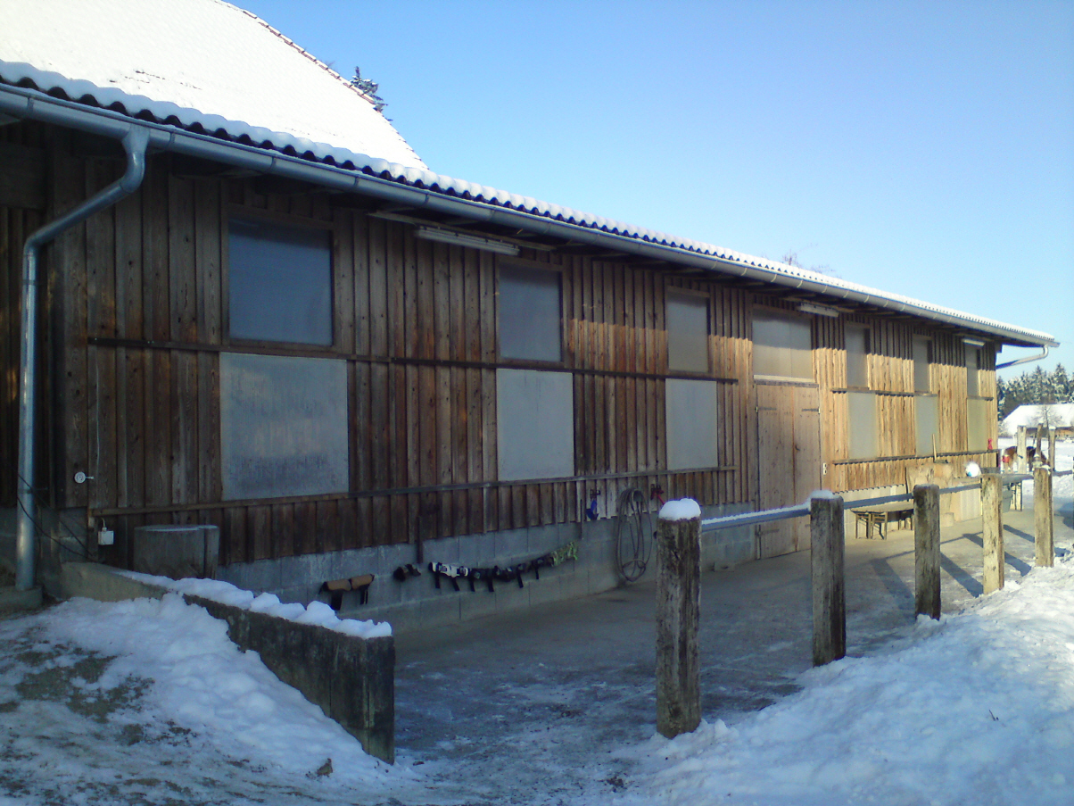 Im Pensionspreis ist die Fütterung, das Ausmisten der Boxe und eventuelles Decken / Umdecken der Pferde enthalten. Jedes Pferd bekommt täglich Auslauf oder Weide (täglicher Weidegang sofern es Bodengegebenheiten und Wetter erlauben). Während den Wintermonaten werden die Pferde in den Ausläufen oder wenn der Boden gefroren ist, auf den Weiden mit Heu gefüttert. Bei uns wird viel Wert auf eine artgerechte Fütterung gelegt. Das Rauhfutter für die Pferde und Kühe produzieren wir auf betriebseigenen Grünflächen, weshalb wir über Heu von bester Qualität verfügen. Das Kraftfutter wird 2 x täglich, Heu 2 - 3 x täglich (je nach Bedarf) verabreicht. Die Benützung des beleuchteten Reitplatzes ist im Preis inbegriffen.